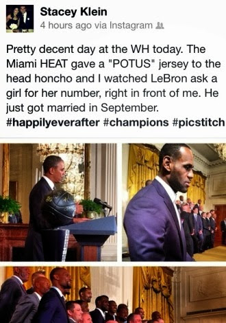 The newly married NBA star was accused of trying to get a girl's number at the White House by NBC Associate Producer Stacey Klein, who put him on blast on instagram. See what she wrote above.